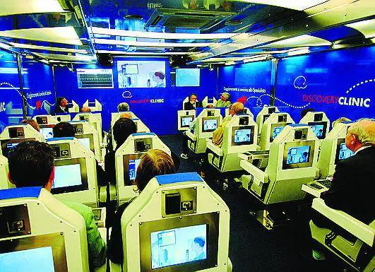 Quindicesima tappa nazionale per il laboratorio viaggiante multimediale di Discovery Clinic, iniziativa nazionale di formazione permanente di Sanofi-Aventis e Bristol-Myers Squibb per la cura delle malattie cardiovascolari, rivolto a specialisti in Cardiologia e Medicina interna. Il truck, un concentrato di alta tecnologia su ruote, può accogliere fino a 30 partecipanti per giornata nelle sue postazioni dotate di poltrona, monitor e tastiera che rende possibile visualizzare, oltre all'intervento proiettato in collegamento in diretta via satellite con la sala operatoria in cui si sta svolgendo.
