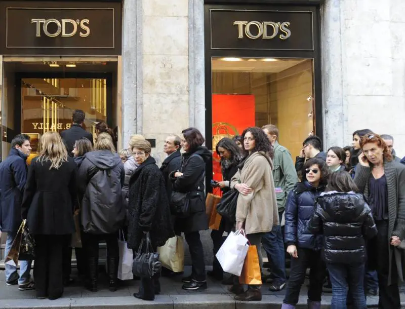 A Milano, nel quadrilatero della moda e nelle altre vie dello shopping, strade e marciapiedi invasi dai clienti, con un'orda di turisti giapponesi armati di seggiole pieghevoli per non stancarsi nella lunga attesa, davanti alle vetrine delle griffe più famose: da Armani a Dolce&Gabbana, da Prada a Hermes, da Gucci a Ralph Lauren.