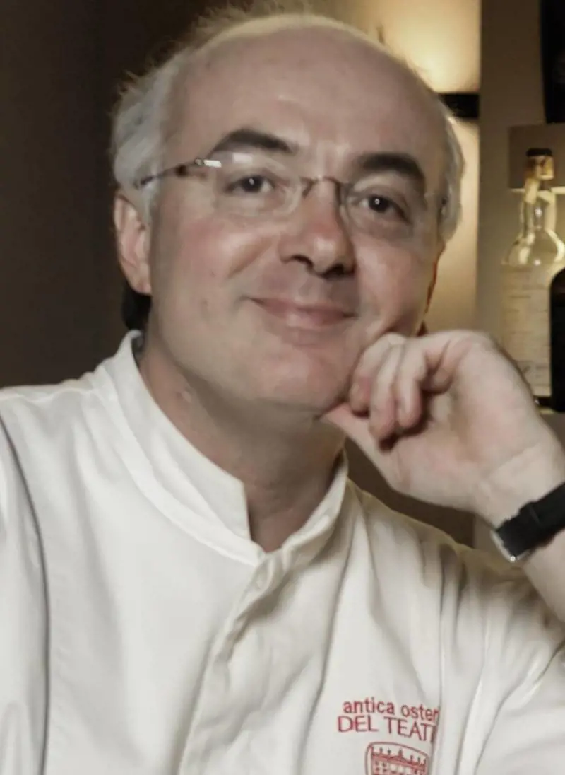 Lo chef piacentino patron del ristorante Antica Osteria del Teatro (via Verdi 16, Piacenza. Tel 0523.323777), il più titolato della città propone un cestino semplice e gustoso fatto di affettati di qualità, verdure e pesce d'acqua dolce.