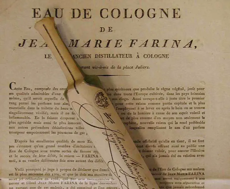 Invece, fu un successo straordinario. Le ditte che inziarono a produrre acqua di Colonia con il nome Farina si moltiplicarono esponenzialmente e con esse i processi per tutelare nome e contraffazioni. Nel 1865, nella sola città di Colonia, le ditte Farina erano 39. E si tralasciano quelle a Parigi o in altre città. Ai clienti interessava acquistare Acqua di Colonia, di quale Farina poi si trattasse poco importava... Nel corso degli anni l'acqua di Colonia, composta da circa 25-30 essenze diverse (la base essenziale è il bergamotto, cui si aggiungono quella di limone, arancia, mandarino, limetta, cedro e pompelmo...), rifornì corti, sovrani e capitali di tutta Europa. Amata ed utilizzata da grandi personalità come Goethe, Voltaire, la regina Vittoria o Napoleone (che s'inondava letteralmente d'«Eau de Cologne», la spruzzava persino sul suo cavallo e la consigliava a tutti come rimedio contro gli acciacchi, da ingerire intinta in una zolletta di zucchero, appunto il «canard Napoleone»), l'acqua di Colonia è ancora oggi prodotta dalla VIII generazione dei Johann Maria Farina secondo l'antica ricetta segreta originale, ed è esportata in tutto il mondo.
