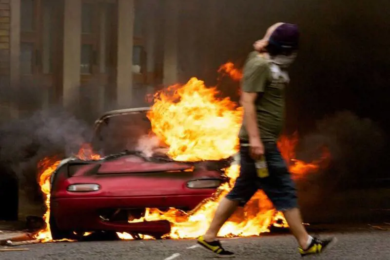 Delinquenti. Non altro. Hooligans miserabili, anche vigliacchi, mascherati, in fuga, nascosti nel canneto di una città che in queste ore non è più imperiale. Londra brucia, non ci sono sangue, sudore e lacrime, c’è il puzzo di fumo acre, ci sono muri anneriti non dal carbone ma dai falò e dalle bottiglie piene di benzina lanciate dai manifestanti. In verità non manifestano contro nessuno, non ne avrebbero coscienza. Si tratta di criminalità ignorante, incosciente, un fenomeno inedito di massa, ratti usciti dalle tane come in un video game, giocando con la violenza credono di partecipare a scene di un film, il loro Bronx, la loro banlieu, la loro Alexandras, sta a Croydon, passa a Hackney, si trasferisce a Peckham, viaggia verso Enfield, poi emigra a Bristol, Liverpool, Birmingham, va nel Kent, l’onda si trasmette con i telefoni cellulari, Blackberry e non Blak Bloc, sono affamati di lusso e sazi di nulla, sfondano le vetrine non dei panifici o dei fruttivendoli, vanno diritti agli empori di televisori e smartphone, si dispongono addirittura in fila indiana, secondo british style, escono fuggendo, tenendo dentro le giubbe, nascosti come le loro facce, ogni tipo di articolo.