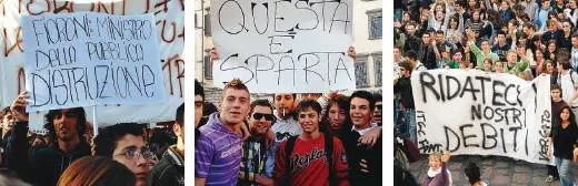 A Milano gli studenti, oltre a lanciare slogan contro Fioroni, hanno tirato uova contro imuri di Palazzo Marino, sede del Comune. Un uovo ha colpito un agente. Momenti di «tensione», ma le pronte scuse presentate dal lanciatore al poliziotto ha evitato la «frittata». Intanto ungiovane portavoce spiegava: «La manifestazione è contro la riforma del ministro, maanche contro la politica scolastica della giunta regionale che privilegia la scuola privata». A Torino i contestatori si sono radunati in piazza Arbarello. A causa della manifestazione è saltato l'incontro che il segretario nazionale dei Ds, Piero Fassino, avrebbe dovuto avere con gli studenti dell'istituto alberghiero Beccaria. L'esponente politico era atteso per le 11,maha poi deciso di annullare l'appuntamento. Pare che nessuno se ne sia lamentato più di tanto.