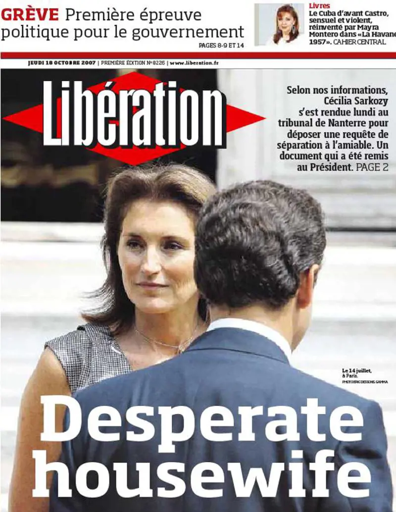 Sposati da undici anni, Cecilia e Nicolas hanno un figlio, Louis, di dieci anni, e ciascuno due figli da un precedente matrimonio (maschi lui, femmine lei). Cecilia è apparsa in pubblico l’ultima volta il 20 settembre, ai funerali del primo marito, il presentatore televisivo Jacques Martin. Lui ha i suoi problemi politici: dopo mesi di luna di miele con la Francia, la sua popolarità è in calo anche se sempre alta, e oggi con lo sciopero generale dei trasporti che paralizza il paese contro i suoi progetti di riforma, il presidente conservatore sta scontando la prima grande opposizione pubblica.