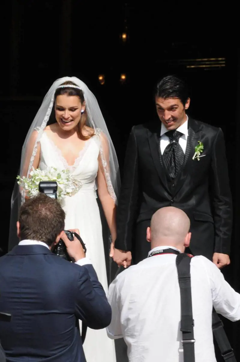 Ma la festa non è stata rovinata: poco dopo le 15 il numero uno della Juve e dell’Italia è arrivato su una Bentley Oldtimer color oro, come pure la madre di Alena e la bella sorella Eliska. Alena, che stando al tabloid di gossip Super era senza reggiseno, è arrivata con il padre in una Rolls Royce scatenando l’entusiasmo dei fan. Per raggiungere la basilica, la sposa ha dovuto farsi strada tra una fitta folla. In uno splendido abito bianco tradizionale, con velo lungo e un mazzo di narcisi candidi in mano, la Seredova non ha disatteso le aspettative. Buffon indossava uno smoking nero classico e cravatta con brillante sopra. Sotto i riflettori è finita però anche la 22enne sorella di Alena, Eliska, paragonata dai media cechi a Pippa Midletton: la Seredova junior indossava un abito azzurro corto che metteva in mostra le sue lunghe gambe. La cerimonia con rito cattolico è stata celebrata in italiano. Alle ore 17 la porta della basilica si è aperta e sposi e ospiti sono usciti sfilando lungo un cordone di persone: immancabile il lancio del riso con foto ricordo. I «signori» Buffon hanno risposto lanciando in aria colombe bianche per poi salire su una limousine e recarsi nell’albergo Four Seasons che li aspettava per il ricevimento. Nello stesso albergo i novelli sposi trascorreranno la loro prima notte da marito e moglie.
