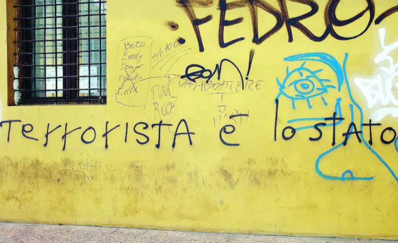 Il mittente delle lettere di minacce del Partito comunista combattente era indicato in via dellInferno 1. Girato langolo si sbuca in via Valdonica, ghetto di Bologna, ma, soprattutto, la via dove Marco Biagi, il 19 marzo 2002, fu ucciso da un commando delle Br. Ora una scritta infamante è apparsa sul muro di fronte alla casa dove vivono la vedova e i figli: «Terrorista è lo Stato» ha tracciato una mano anonima con spray nero. Attorno nessuna sigla. La scritta è stata vergata forse venerdì, come ha segnalato al Resto del Carlino un residente che ha scritto subito pensando ai parenti del giuslavorista ucciso: «Uscendo di casa vedono questa oscenità».