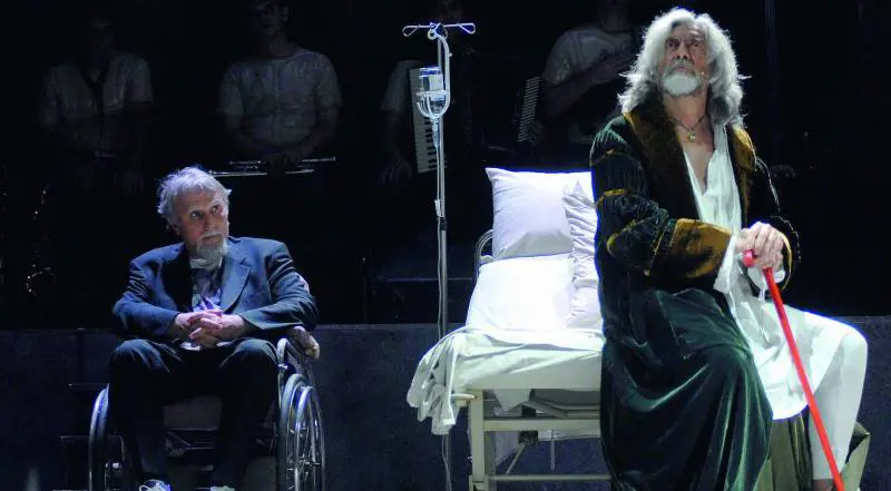 Niente di strano dunque se, in questo spettacolo atteso allArgentina per questa sera, interi brani shakespeariani assumeranno la forma di canzoni rock e niente di strano neppure se, allinterno di questo impianto metateatrale (siamo in un mattatoio o in un teatro, ma lo spazio è essenzialmente indefinito), verità e menzogna, denaro e sentimenti, giustizia e ingiustizia si (con)fonderanno fino a rendere lambivalente parabola dello strozzino ebreo che reclama il suo pegno (una libbra di carne umana) come vessillo contro le discriminazioni e le ingiustizie una sorta di strenua esaltazione del palcoscenico. Vi si esplora, cioè, la possibilità che esso sia ancora luogo privilegiato di denuncia, di lotta allimpostura e alla mercificazione imperanti. Viceversa, significherebbe sancirne linutilità e la morte. I temi in ballo, dunque, sono molti e tutti di pari rilevanza.
