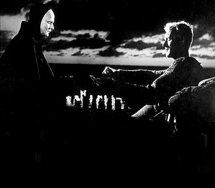 Il mondo del cinema è stato dunque molto meno inquisitorio con Bergman di quanto il mondo della filosofia lo è stato con Heidegger, dimenticando, complice la Guerra fredda, che questo svedese non era stato affatto neutrale fra 1939 e 1945. Bergman - come Heidegger - non rinnegò le sue idee politiche giovanili, si limitò a non parlarne più. E, in un'epoca secolarizzata, cercò un rapporto con la divinità. Suo padre era stato pastore di Corte a Stoccolma, ma Bergman aveva caro anche il passato pre-protestante, come l'età delle crociate. Da esse torna il cavaliere von Bock (Max von Sydow) del suo film più famoso, Il settimo sigillo (1956, premio speciale della giuria a Cannes). Avendo perduto ogni illusione, è lucido davanti alla Morte personificata (Bengt Ekerot) e la sfida a scacchi; sa di perdere, ma consente ai saltimbanchi - la sua stessa categoria - di sfuggire al destino. Morale: il cavaliere muore, il cinema resta.