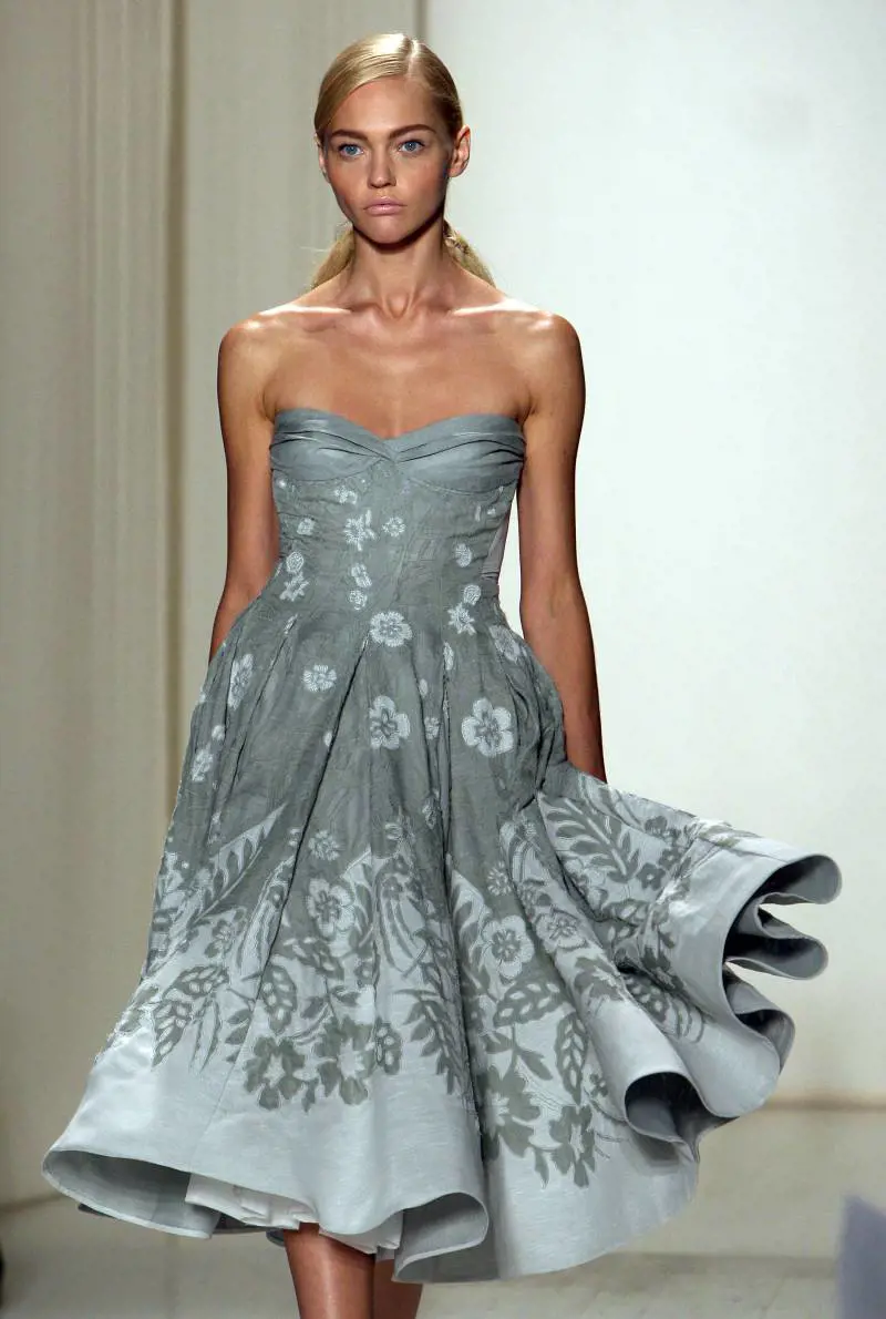 Perfetta la collezione con cui Naoki Takizawa esordisce come griffe a sé stante dopo aver disegnato per anni le collezioni di Issey Miyake. Il maestro giapponese sarà sicuramente fiero dei risultati del suo allievo che ha costruito una serie di modelli meravigliosi utilizzando il poliestere più leggero del mondo, nylon intrecciato con fili di rame e argento oppure spalmato d’oro oltre a uno speciale trattamento chimico che rende la seta simile al lino. «Mi sono ispirato a icone d’indipendenza e creatività come Charlotte Rampling, Patti Smith e la pittrice Georgia O’Keefe» ha detto Naoki prima di mandare in passerella le sue poetiche creazioni. Molto diversa ma senza dubbio ben riuscita la sfilata di Zac Posen, enfant prodige della moda americana che ha proposto una raffinata alternanza di bianco, nero e tabacco per i modelli da giorno lunghi fino ai piedi. Quelli da sera erano un’esplosione di tinte forti e piene come giallo, rosso o verde, tranne l’uscita finale degli abiti nuvola.