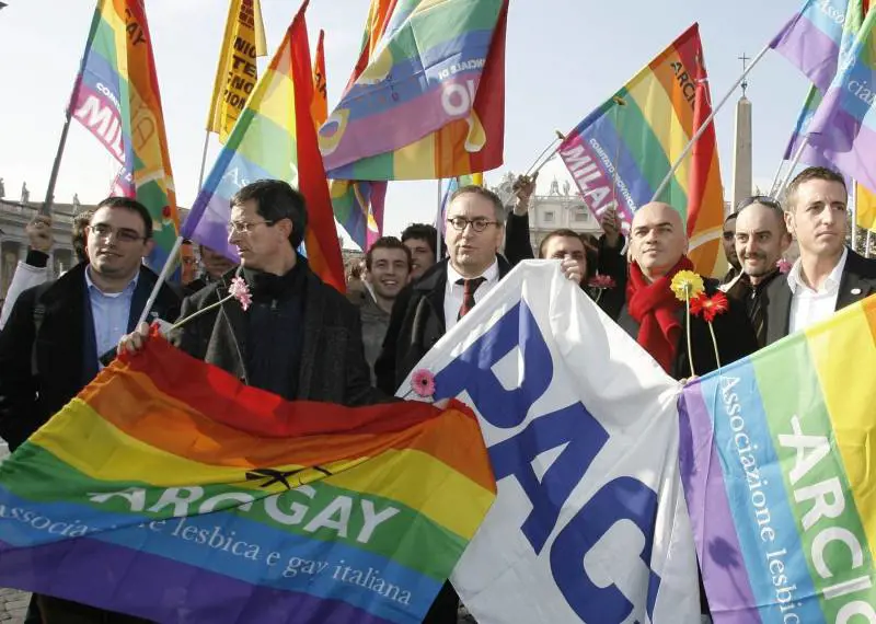 La piazza «dell’amore» e dei diritti riconosciuti, secondo la definizione degli organizzatori, almeno 10mila persone tra palazzo Farnese e la chiesa di Santa Brigida (80mila per gli animatori), era un circo di bandiere colorate arcobaleno, della pace e dell’universo gay, e di bandiere di partito, di ragazze che si accarezzavano e di coetanei che si appartavano per darsi un bacio lontano dalle telecamere per non farsi vedere dai genitori al telegiornale.