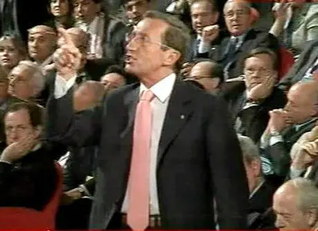 ditino alzato durante l’assemblea nazionale del Pdl del 22 aprile 2010, e