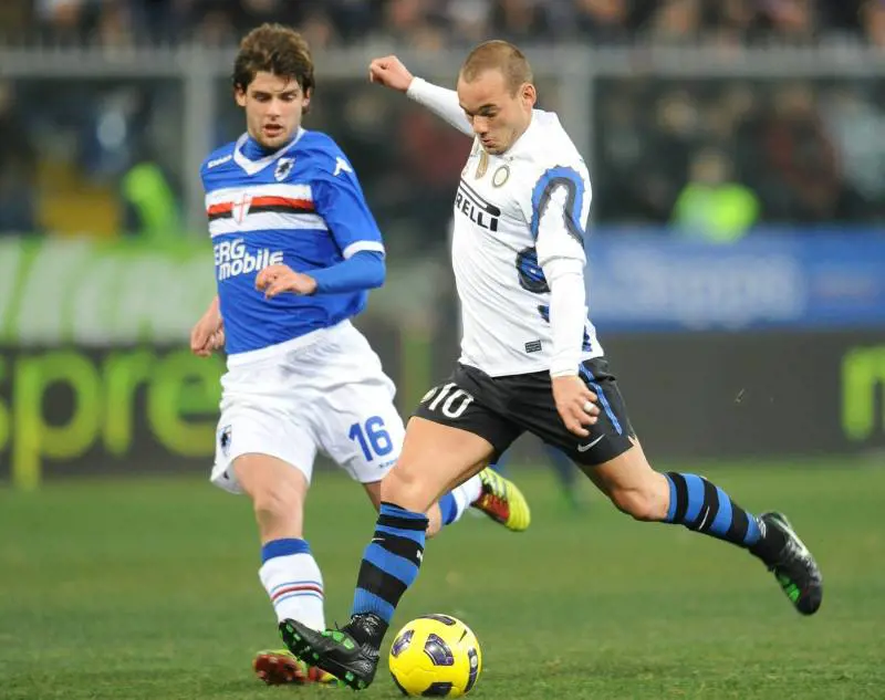 Inter che vince, ma Samp che gioca, fa gioco ed anche spettacolo. Inter che per lungo tempo si è rivista nella affannose e affannate partite degli ultimi anni a Marassi. Pazzini ingabbiato, Eto’o esploratore senza fortuna fino al gol. Gli altri hanno faticato. Mancava un ispiratore vero. Non lo è stato Sneijder che, fino al minuto 28 della ripresa, ovvero quando il piedino è tornato alla noblesse con quella punizione pennellata in gol, ha alternato giocate vive ad assenteismo vero.