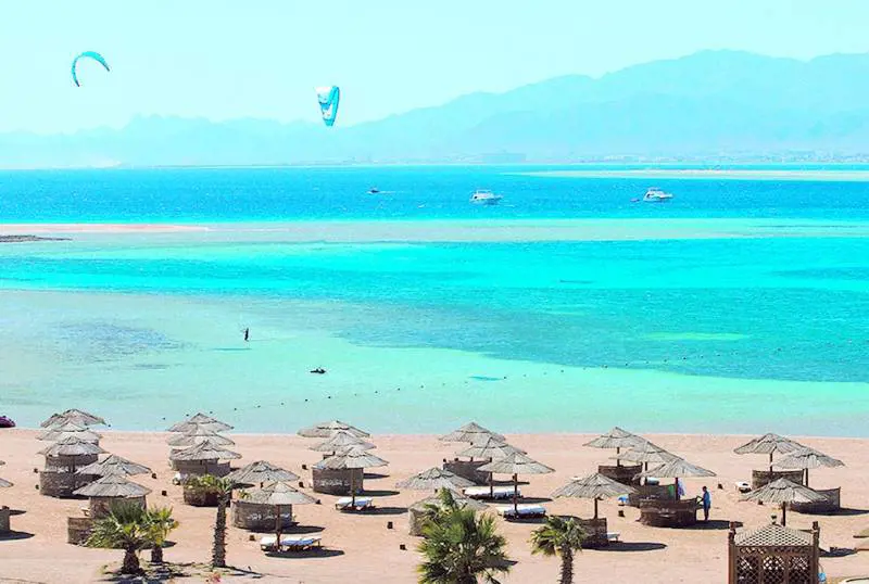 All'inizio li scambi per un miraggio. Puntini schizofrenici che macchiano un cielo azzurro e senza nuvole, ombre che galleggiano nell'aria spinte dalla forza del vento. Poi ti avvicini e capisci che sono vele. Colorate. Saldamente agganciata a ogni vela, una persona. «Soma Bay è la migliore località del Mar Rosso per gli amanti del kitesurf», racconta Michael Schibler, resident manager del Kempinski Hotel. «E per i giocatori di golf», gli fa eco Bernard Meyer, direttore del Leading Hotel Des Cascades. Per capirci: Kempinski e Des Cascades (insieme a Sheraton, Breakers e Robinson) sono gli alberghi del polo turistico di Soma (pronuncia Suma) Bay. Una penisola che tre magnati mediorientali hanno trasformato nel paradiso della vacanza di lusso alle porte del deserto egiziano, 45 km a sud di Hurghada. Alle spalle, sabbia e montagne di roccia brulla. Dentro, protetti da mura, recinzioni e servizio di security, giardini, piscine, fontane. E il blu ipnotico del mare abbracciato dalla tavolozza cromatica della barriera corallina, dalle vele colorate dei kiters, dal tappeto color smeraldo del campo da golf.
