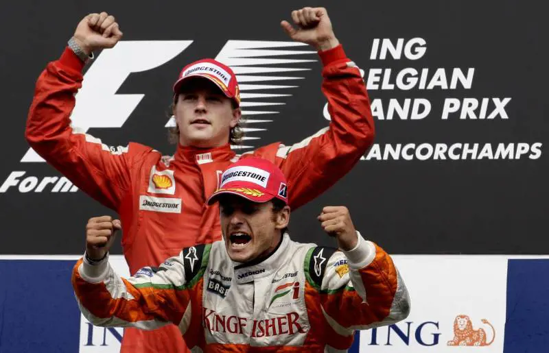 Spa Francorchamps - Prima volta nella stagione. Quasi una liberazione. Il ferrarista Kimi Raikkonen ha conquistato il successo nel Gran Premio del Belgio, 12esima prova del Mondiale di Formula 1, precedendo sul traguardo l'italiano Giancarlo Fisichella su Force India. Terzo Sebastian Vettel su Red Bull. L'ultimo successo della Ferrari risaliva al Gran Premio del Brasile, ultima gara del 2008, con Felipe Massa. Raikkonen sfrutta bene l'incertezza di Barrichello in griglia. Riesce subito a guadagnare la seconda posizione alle spalle dell'italiano, scattato in pole position. La safety car al primo giro, per l'incidente che mette fuori gioco Hamilton, Button e Grosjean, lancia ancora di più il Cavallino. Raikkonen passa la Force India di Fisichella e gli resta davanti fino alla fine.