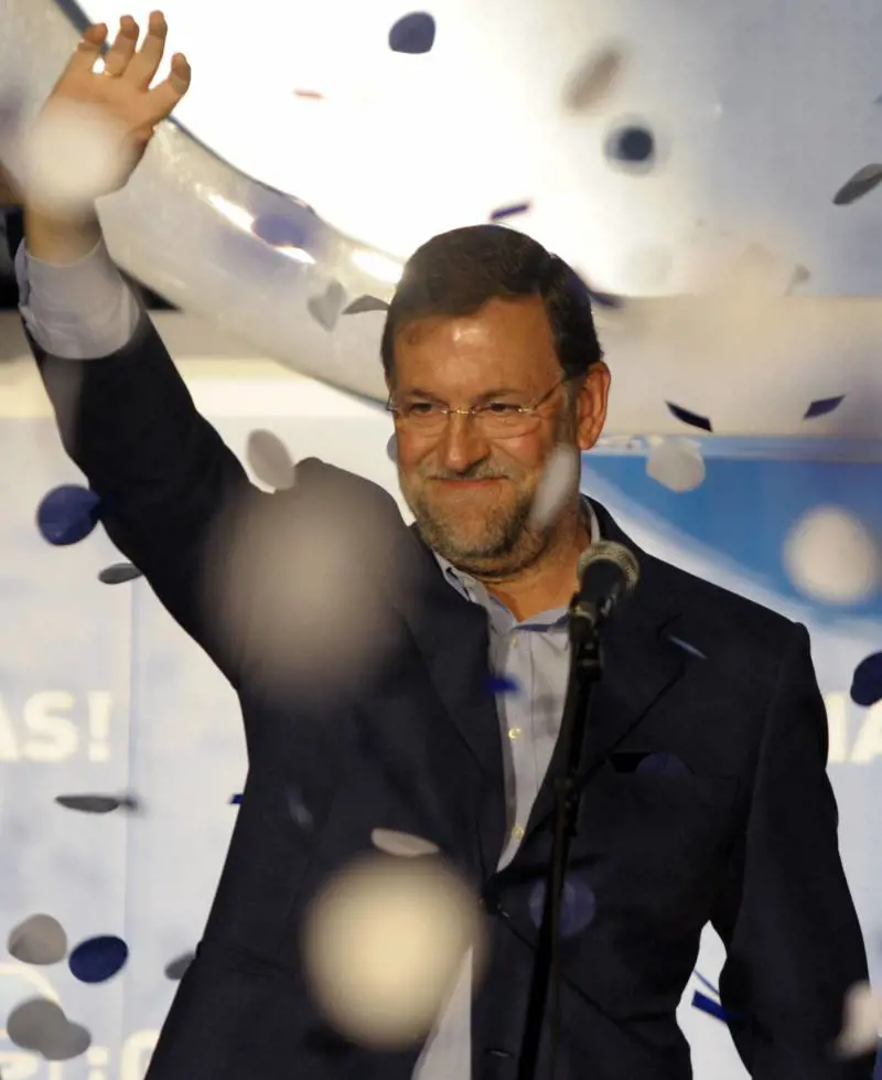 Vittoria storica per Rajoy Proclamando la vittoria del Pp sul balcone della sede del Partito in Calle Genova a Madrid, Rajoy ha detto che "una maggioranza di spagnoli si è pronunciata per il cambiamento politico" e, mentre centinaia di simpatizzanti scandivano "Zapatero dimissioni", ha aggiunto che "presto porteremo il Partido Popular al governo di Spagna".