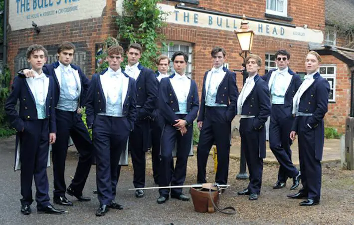 «Bere e mangiare a sazietà dalla tavola della vita» è il motto di questi fannulloni (nel film li si vede studiare assai poco) che si versano addosso bottiglie di porto, girano su auto lussuose e passano il week end nei castelli di famiglia. Naturalmente, tali personaggi sfociano subito in macchiette, complici certe nefandezze: tra chi declama limericks in latino (!) e marchiani errori di traduzione («parrocchetto» per «pappagallo», «topo di libreria» per «topo di biblioteca»: evidenti i calchi dall'inglese), a tratti si ride, mentre la regia vorrebbe indurre indignazione. «Non bisogna giudicare i personaggi. Ma il film potrebbe suscitare un dibattito sulla nostra società», spiega Max Irons, che non usa Twitter, pur essendo diventato un protagonista della Twittosfera.