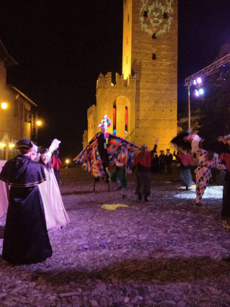 Accompagnati dalla Banda Amilcare Ponchielli – Città di Piacenza le maschere hanno sfilato fino in cima al paese e partecipato al Gran ballo del Podestà, dove si sono esibiti nei balli in uso nel settecento, insieme ad altri artisti che hanno animato la serata tra cui le ballerine di Arteare nelle Grotte di Santo Spirito.