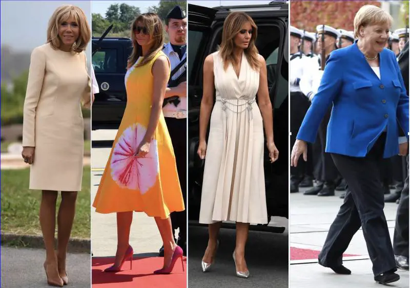 Nonostante sul tavolo delle trattative sia presente solo Angela Merkel, le donne, o meglio le “first lady” hanno attirato molto l’attenzione di tutti, suscitando curiosità per i loro look e il loro bon ton. Lasciando fuori dai giochi proprio la Merkel, il cui look rigido ha variazioni solo sul colore delle giacche che indossa, l’attenzione è tutta su Melania Trump e Brigitte Macron. Le due si mormora siano molto amiche e - a detta di Donald Trump - le coppie si sono viste spesso lontane dagli impegni lavorativi.