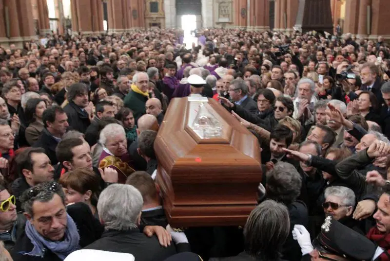 Ai funerali folla oceanica, commozione e molte star. FOTO Duetti storici - Istrione sul palco - Gli album - Con Napolitano e Wojtyla - L'ultimo saluto VIDEO Camera ardente - Polemiche a Sanremo - Morandi commosso