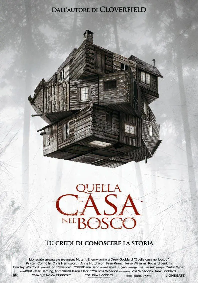 Esce il 18 maggio al cinema QUELLA CASA NEL BOSCO, la cui genesi è legata all’intuizione che appellarsi all’autoironia è la sola arma per uscire dallo stagnante stato in cui versa da decenni il genere horror. Joss Whedon alla sceneggiatura e Drew Goddard alla regia, (già autori televisivi di Angel e Buffy - L'ammazzavampiri), dissacrano in un colpo solo una sommatoria di luoghi comuni del cinema del terrore e lo fanno con maestria. Probabilmente decostruire, guardare dentro fino agli ingranaggi, è quel che serve fare prima di poter dare nuova vita a ciò che si ha tra le mani.