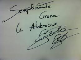Dall’analisi della scrittura e della firma di Gabriel Garko si rileva un comportamento aggressivo (vedi taglio della lettera “t” lanciata verso destra in questa dedica (foto). Tale aggressività, che emerge soprattutto dalle lettere inziali dello scritto e della firma, mette in risalto il bisogno di riscatto sociale e la voglia di mettere a disposizione le proprie attitudini cercando di ottenere il meglio di sé. Gabriel è dotato di una fine sensibilità, caratterizzata anche da un notevole senso estetico e da una energia vitale che egli investe con produttività a servizio della compensazione di un passato poco gratificante (vedi firma con lettere iniziali grandi e righe che sembrano cancellare nome e cognome). Egli ha cercato di investire il proprio talento estetico nell’attività artistica e nell’affermazione di sé, come riscatto sociale appagante. E’ nata in lui la spinta a mettere in gioco se stesso per sentirsi pago, costi quel che costi; non vuole però cedere alla mediocrità (riccio alla fine della parola “grazie” e aste che sembrano lanciate verso l’esterno nel nome e nel cognome). Tale sfida può avere il valore della provocazione; un modo per non perdere lo smalto e salvaguardare l’immagine che ha creato attorno a sé.