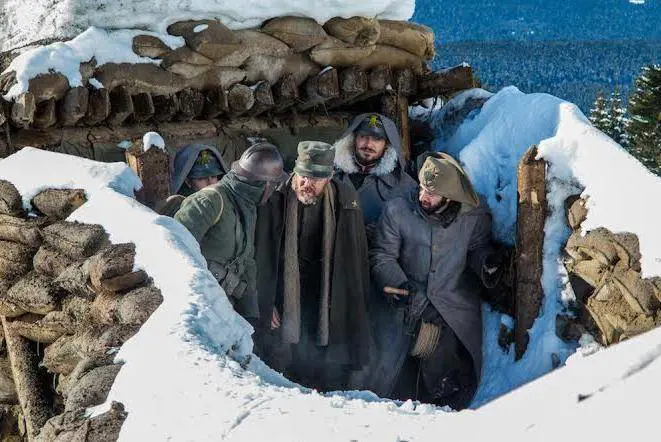 Un film drammatico in un bianco e nero da cartolina primonovecentesca, dove tornano anche i nostri dialetti. A ricordare che ci fu un tempo, per quanto sanguinoso, in cui tra i giovani italiani circolava una diversità linguistica affratellante. Canta in napoletano il soldato del rancio (Andrea Di Maria), solo tra la neve e davanti alla montagna degli altipiani di Asiago e impreca in veneto il tenentino pallido (Alessandro Sperduti), che rifiuta i suoi gradi.