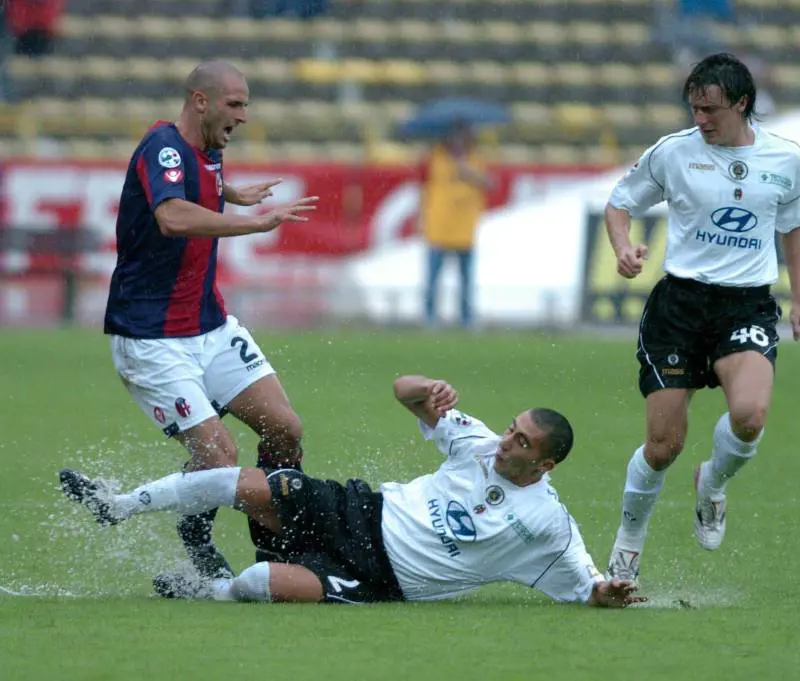 Uno Spezia che ha indubbiamente ha subito la forza della squadra di Ulivieri, ha sofferto, poi ha tirato fuori gli artigli per quella che sembrava la zampata decisiva. Invece tutto è stato vano. A un minuto dalla fine gli aquilotti centrano una traversa con Dionigi. Capovolgimento di fronte e rete di Bellucci, per il 2-1 definitivo. Al DallAra, Antonio Soda, baby-allenatore al cospetto del veterano dei mister, Renzo Ulivieri, schiera il suo modulo preferito: il 4-3-1-2, con il rientrante Alessi a giocare dietro le punte, Guidetti e Varricchio. In porta cè Santoni, nella difesa confermati Giuliano, Maltagliati, Scarlato cui viene affiancato Nicola, allesordio stagionale vista anche lindisponibilità di Rossi e Gorzegno. A centrocampo Greco e Ponzo, con Alessi e Frara. Bologna che si affida a Bellucci, supportato da Zauli, Nervo e Meghni. Nomi che solo a pronunciarli fan paura rispetto a uno Spezia che, comunque, ha come obiettivo una salvezza tranquilla. La partita mostra subito un Bologna deciso a passare in vantaggio, ma Bellucci e Meghni non trovano la giocata giusta. Al 12 Nicola viene ammonito per un fallo di mano. Quel giallo costerà caro. Santoni, nel giro di pochi minuti, si guadagna la palma del migliore in campo per una serie di parate sugli avanti felsinei. Lo Spezia fatica, Guidetti si busca un giallo, e nella ripresa arriva la rete bolognese: è lundicesimo, cross di Daino dalla destra, Bellucci insacca di testa. Lo Spezia si riorganizza, Soda mescola le carte e inserisce Confalone e Dionigi per Alessi e Guidetti e dopo pochi minuti Baù per Maltagliati. Aquilotti a tre in difesa, e che spingono come forsennati, su un campo pesantissimo per la pioggia. Al 79 Nicola stende Della Rocca: è cartellino rosso. E qui lo Spezia mostra il suo carattere. Con praticamente due soli difensori, i liguri spingono e, all85, trovano il pari. Punizione battuta da Grieco e Varricchio trova la deviazione giusta. Non è finita. Lo Spezia non si accontenta. Larbitro Brighi assegna tre minuti di recupero. Nel secondo dei quali Dionigi centra una traversa clamorosa.