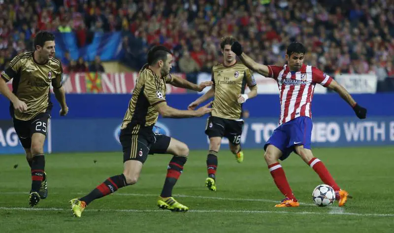 L'Atletico apre e chiude la prima frazione dopo il grande spavento procurato da Kakà. Non deve fare granchè la squadra di Simeone per mettere Abbiati allo spiedo, basta vincere un contrasto nemmeno irresistibile su Essien piedi d'argilla, per costruire la trama elementare che consente a Diego Costa, in spaccata, di seminare Rami e trafiggere il portiere deviando con la punta del piede. Può essere una ferita mortale che mette in ginocchio il Milan, capace invece di rimettersi in marcia verso un improbabile riscatto. Balotelli sbaglia uno-due-tre giocate in sequenza, perde le staffe e invece di prendersela con sé stesso, battibecca con l'arbitro prendendosi l'inevitabile giallo. Nemmeno Taarabt indovina i dribbling sui quali si ostina a puntare. Ma c'è sempre Kakà su cui puntare e c'è quel Poli, pieno di buona volontà e di corsa, che certificano la breve resurrezione rossonera: uno raccoglie l'invito di Balotelli e lo scodella sul secondo palo dove Kakà, di testa, con deviazione, rimette in discussione il risultato.