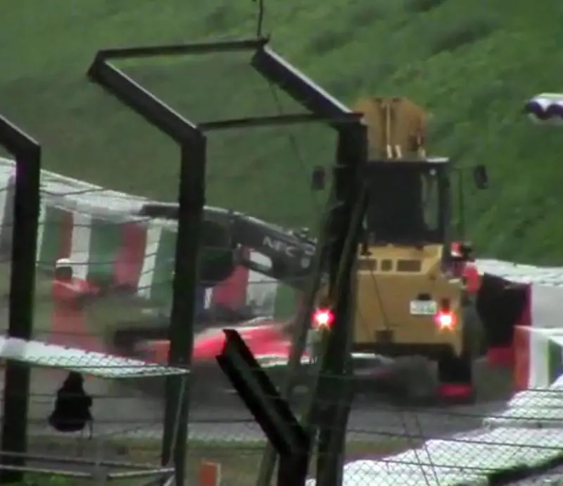 C'è il video. Ci sono le immagini. C'è un caterpillar giallo che nel filmato viene alzato di peso da una F1 che gli passa praticamente sotto per tutto un lato. C'è un rollbar portato via come burro, c'è un pilota a bordo, c'è Jules. L'impatto sulla parte sinistra del capo è devastante, la velocità è alta, maggiore di quella a cui, il giro prima, era uscita in testacoda la Sauber di Sutil che la gru stava cercando di spostare. La telemetria dice 213 all'ora nel momento in cui Bianchi ha perso il controllo.