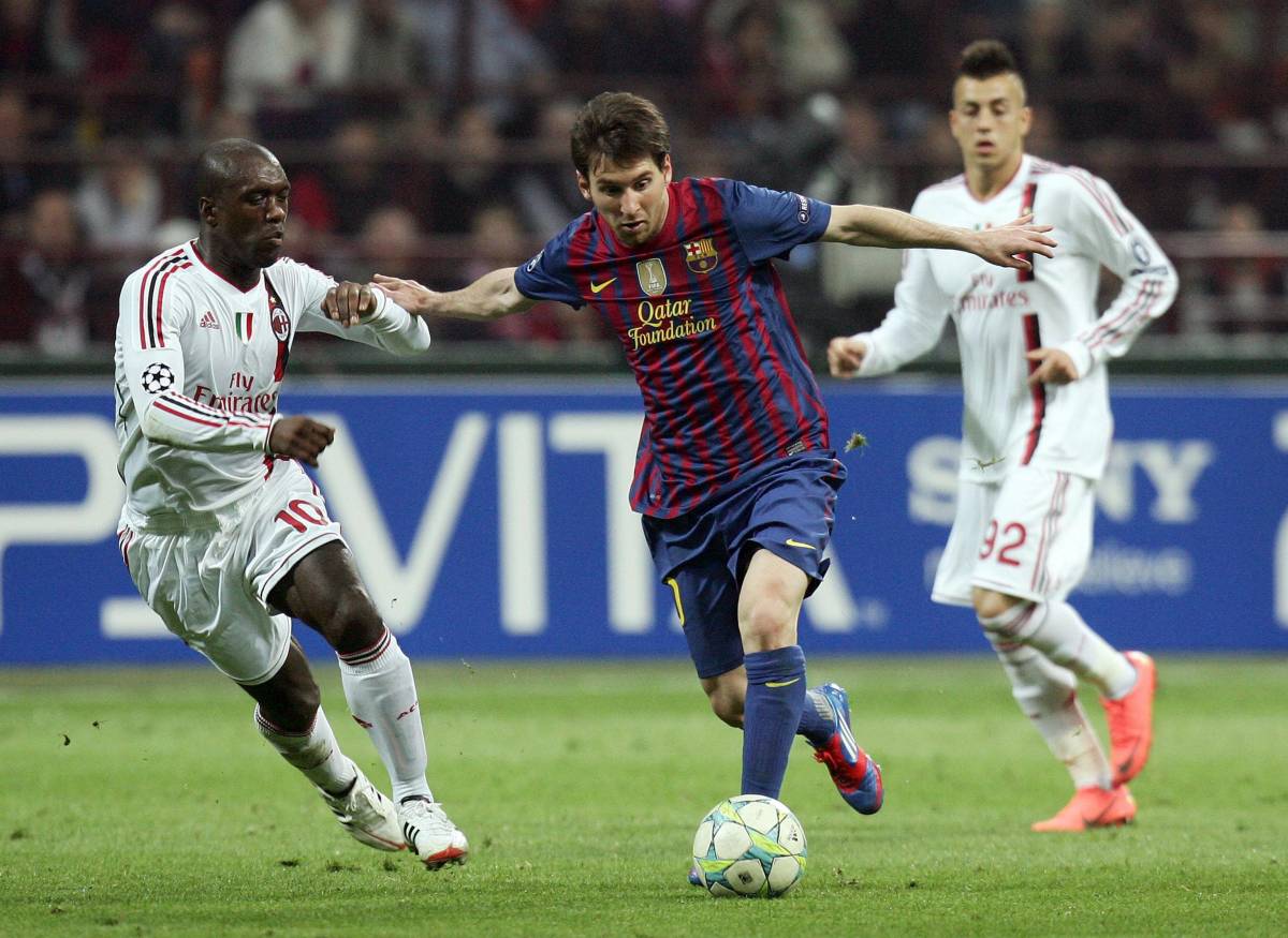 Si parte subito a mille, con diversi capovolgimenti di fronte. Il Milan al 3' sfiora il gol con Robinho, che spara alto da ottima posizione dopo una ribatttuta del portiere Victor Valdes su tiro di Boateng. Al 6' Messi calcia una punizione dal limite e scivola clamorosamente, toccando la palla con il piede di appoggio. Ma questa brutta figura davanti ai 76mila del Meazza non mette di cattivo umore il Pallone d'oro, che continua a far vedere belle giocate, anche se non riesce a incidere più di tanto. Al 16' dubbio intervento di Abbiati su Sanchez. Passano quattro minuti e Ibrahimovic, solo davanti alla porta, tira sul portiere. Nella ripresa prosegue il possesso palla del Barcellona ma il Milan si difende con ordine. Proprio allo scadere Antonini salva la porta su Tello.