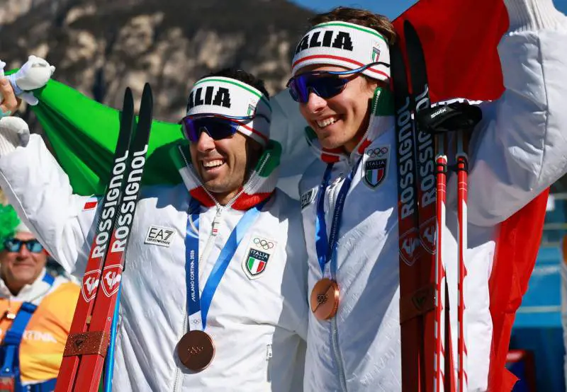 La felicità dunque è una coppia che si passa il testimone: Pellegrino era un giovane fenomeno a Sochi 2014 e finisce ora fantastico da padre di famiglia; Barp esce al suo esordio con due bronzi e un esempio da seguire. E soprattutto con la conferma che il suo cuore matto nel 2025 ebbe un aritmia cardiaca sistemata con una piccola operazione ora batte il tempo giusto. "Una medaglia in un evento a squadre era il nostro grande obiettivo dirà poi Federico -, il bottino è addirittura raddoppiato. Per il primo bronzo ho pianto di emozione nel finale, per il secondo meno: ero troppo stanco. E il pubblico ci ha dato una marcia in più ogni giorno". Soprattutto a Elia: "È stata la mia migliore giornata sugli sci: facevo quello che volevo, dando cambi tranquilli a Federico. Lui è stato un idolo, poi compagno di camera: è un fenomeno. Con Davide Graz e Martino Carollo in staffetta abbiamo dimostrato di esserci. Siamo giovani, il futuro è tutto da scrivere".