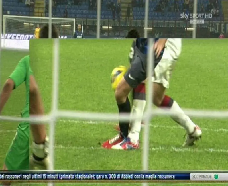 Al 45’ e 18”,nei tre minuti di recupero, Astori mette il suo piede sul destro di Ranocchia che in possesso di palla tenta di girarsi, area piena, il sardo il pallone non lo tocca proprio, il nerazzurro va giù, il fischio non arriva, Moratti manda tutti a quel paese, Stramaccioni urla e l’arbitro Giacomelli, al suo esordio con l'Inter, lo manda negli spogliatoi.