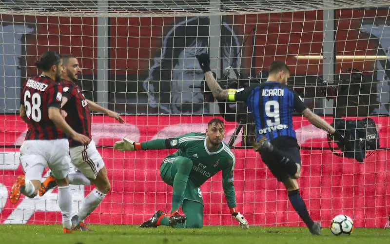 Milano - Il derby di Milano è una questione di centimetri. Quelli che la Var intercetta di differenza tra la scarpa di Icardi e quella di Bonucci e che mettono in fuorigioco il capitano nerazzurro. Il gol annullato è il momento chiave di una stracittadina che alla fine l'Inter vince solo ai punti perché Icardi si divora due gol clamorosi davanti alla porta spalancata. Come se l'argentino, dopo l'esultanza che la tecnologia gli fa rimangiare, si immalinconisca, sbagliando l'impossibile per un bomber del suo calibro. Sono invece abbondanti i centimetri, almeno mezzo metro, che vanificano la prodezza acrobatica di Cutrone nella ripresa.