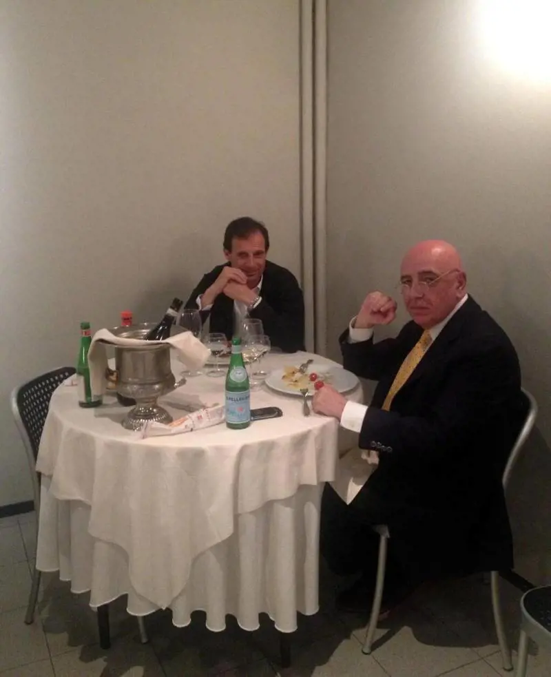 Dietrofront. Nel piccolo mondo variopinto del Milan si passa dal pessimismo più cupo (cacciato Allegri, forse rischia anche Galliani), allo sfrenato ottimismo (si viaggia verso l'accordo su tutta la linea). Sono gli effetti (e le interpretazioni) successive alla cena di giovedì sera svoltasi in pieno centro a Milano tra Galliani e Allegri conclusa da un annuncio ufficiale: passare cioè da villa San Martino ad Arcore, quindi dal confronto con Silvio Berlusconi, prima di sciogliere il nodo della panchina rossonera. Chi la definisce l'ultima cena per accreditare la tesi di un divorzio soltanto rinviato ha ricevuto dal vice-Berlusconi, in partenza per Tiblisi sede della partita dell'addio di Kaladze, una bacchettata sulle dita. «Non sia blasfemo» la replica spedita al cronista.