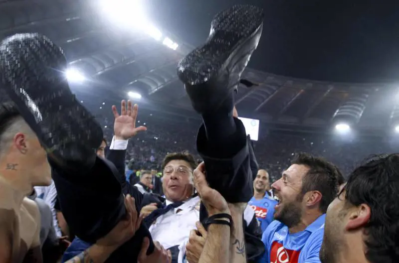 E domenica sera è arrivato il primo trofeo degli 8 anni del produttore cinematografico, la Coppa Italia strappata alla Juve fino a quel punto imbattuta in stagione. Il miglior ciak battuto da De Laurentiis sul set del campo. È stata la vittoria del trio dei tenori, destinato a scindersi a breve, della squadra e del lavoro di Mazzarri. Abbandonatosi anche lui alla gioia, tanto da baciare Lavezzi sul prato dell’Olimpico e gli altri lontano dall’occhio indiscreto delle telecamere.