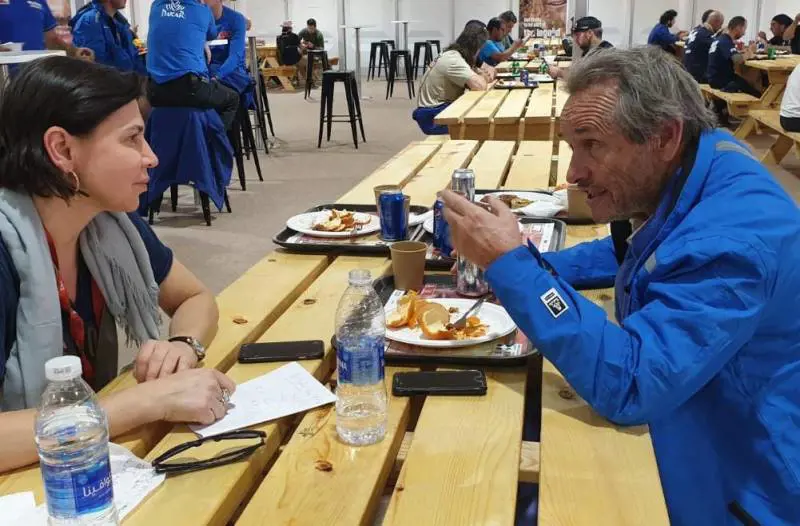 Al Ula Nel nome di Thierry Sabine. I concorrenti sono partiti alla volta di un anello di 422 km intorno ad Al Ula, patrimonio dell'Umanità per le bellissime formazioni montagnose ed il sito archeologico di Hegra, nota per le sue tombe nabatee scolpite nella roccia, cugine della più famosa Petra, in Giordania, situata solo 500 km a nord. Non essendoci macchine media a disposizione, ho indugiato nella tenda un po' di più e mi sono recata a colazione dove ho scorso Jacky Ickx e signora. Jacky, 81 anni il primo gennaio, mi ha subito invitata ad unirmi a loro. È sempre affascinante parlare con una leggenda. I suoi racconti portano subito in Africa, alle origini di questo rally che ha cambiato più volte pelle, ma non il fascino. "Sabine era un leader. Si comportava come un grande generale e noi eravamo la sua truppa di avventurieri. Indossava una giacca bianca da aviatore" ricorda. Sabine, visionario padre della Dakar, venne soprannominato dalla carovana dio, "perché sorvegliava la corsa dall'alto del suo elicottero bianco e portava la barba", mi raccontò un giorno Hubert Auriol, partito ragazzo e tornato uomo da quella prima Dakar del '78.