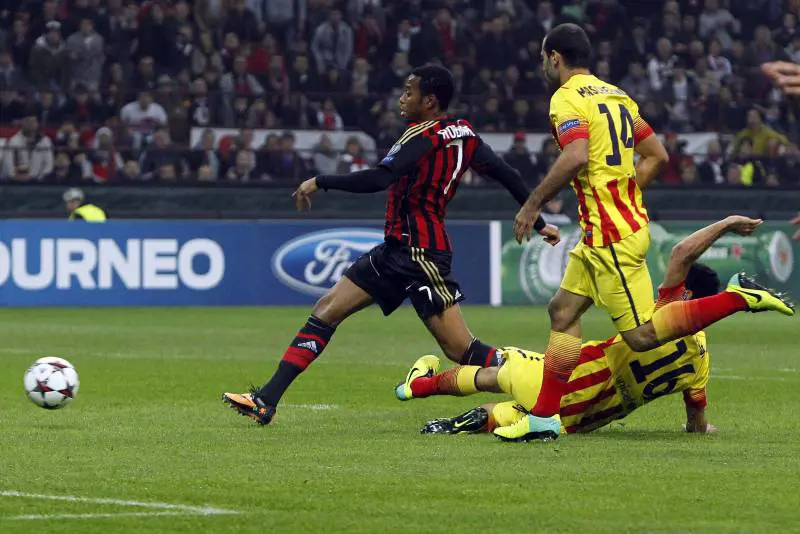 Il Milan ha coraggio, sfida il Barcellona aspettandolo nella sua metà campo, e poi riparte. Gioca alla pari insomma e pari sono nella frazione oltre che i gol anche le occasioni limpide, di Mexes e Sanchez replicate nella ripresa da Robinho e Iniesta, entrambi soli davanti ai portieri, uno scarabocchio in fotocopia. Qui comanda il Barcellona, secondo attese scontate, mentre il Milan deve attrezzarsi per non farsi mettere sotto. Robinho non è un centravanti, si arrangia, Birsa denuncia gravi limiti, di temperamento più che di mestiere, ma gli altri, tutti gli altri, si mettono al servizio della patria. Non mancano gli errori perché la zucca non può trasformarsi in carrozza di cristallo ma la feroce attenzione nelle marcature e il sacrificio sono segni evidenti nella notte. Anche Kakà, già proprio Kakà applaudito a scena aperta anche per un paio di recuperi difensivi, acclamato dalla curva e spolpato dopo un'ora di scatti a ripetizione quando si fa da parte e esausto e gratificato dalla prova esibita. L'ultimo quarto tocca a Mario Balotelli, arrivato dalla panchina a dare fisico e cuore a tutto il Milan, in soggezione a quel punto. La premiata ditta Iniesta-Xavi-Messi è una garanzia, Neymar si vede a intermittenza. Non mollano più il comando del gioco e del campo. Provano e riprovano a far saltare il banco, Adriano sbaglia un gol fatto, imitato più tardi da Muntari. Una combinazione di qua, una di là a dimostrazione che hanno gambe, voglia e fame fino in fondo. Senza la necessaria lucidità, naturalmente.