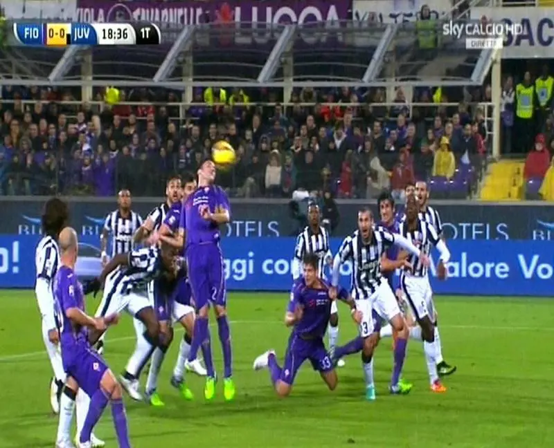 Partita degna solo di alcuni presupposti: battaglia calcistica dove, di tanto in tanto, spariva il calcio e restavano calci e falli. Pioggerellina sul bollire dei nervi ed anche del tifo, Rizzoli, ovvero l'arbitro, impegnato nel distinguere fra falli da ammonizione ed altri solo da punizione. Non proprio facile, avendo davanti giocatori pronti a spergiurare il contrario. Le titaniche lotte fra Chiellini e Gomez sono state un leit motiv. Ognuno a darci dentro, poi Chiellini nel primo tempo ha rischiato anche la trattenuta da rigore che i fiorentini hanno reclamato e forse non a torto. Dimenticando che, dopo un quarto d'ora, un intervento di Savic su Pogba, in area, poteva spingere a meditare sul peccatuccio.