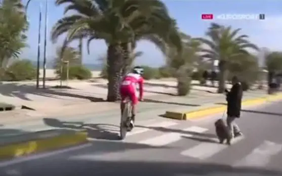 L'unico brivido lo regala il campione del mondo Peter Sagan, che impegnato nella cronometro di San Benedetto del Tronto, è lanciato sul rettilineo del lungomare ad oltre 50 Km/h, si trova a dover evitare una signora con tanto di cane al guinzaglio che gli attraversa improvvisamente e in tutta calma la strada. Il campione del mondo si accorge appena in tempo deviando provvidenzialmente sulla sinistra e proseguendo lungo la pista ciclabile a lato strada. Il campione slovacco, con la sua faccia da pierino la peste, minimizza l'accaduto con una battuta delle sue: «È stata colpa mia, stavo andando contromano... », dice divertito, anche se al momento, dopo averla scansata per un niente, non ha mancato di girarsi e invitarla ad andare proprio a quel paese.