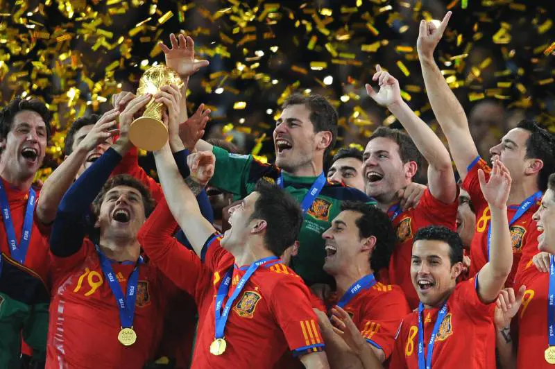 Diverso, invece, per la Spagna: fantastica e splendente, reduce dal successo nell'europeo, addobbata dal gioco quasi sudamericano del Barcellona. Iniesta e Xavi, Xabi Alonso e Villa, Piquè, Sergio Ramos e Casillas prolungarono lo spettacolo fin agli europei 2012. Poi il tempo avrebbe lavorato contro. La Spagna, quella Spagna, lasciò una interpretazione difficilmente riproducibile, un calcio bello da vedere: universalmente applaudito. Oggi è finito il tempo del tiki taka, non quello dei successi spagnoli in Champions.