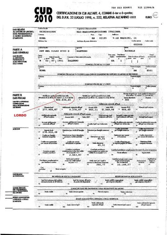 Santoro pubblica il Cud Michele Santoro mette una copia del Cud 2010 sul sito di Annozero, con messaggio al ministro della Funzione pubblica Renato Brunetta: "Caro Ministro, questa è la copia del mio Cud 2010, dal quale risultano un reddito lordo di 662mila euro e tasse e contributi per la metà.