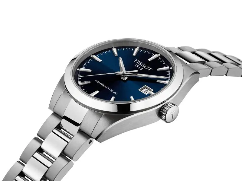 Il mercato, oggi, richiede misure più contenute, adattabili, allo stesso tempo, su polsi maschili e femminili. Inevitabile, dunque, anche per Tissot, incontrare una simile esigenza nel contesto di una collezione emblematica per la sua raffinata interpretazione della quotidianità, ossia la Gentleman. Dopo aver lanciato, con successo le versioni da 40 mm, dunque, ecco arrivare il modello da 38 mm, una dimensione che conferisce maggiore versatilità, senza perdere gli elementi caratterizzanti della linea: design equilibrato, robustezza ed affidabilità. La cassa in acciaio, in tale direzione, sviluppa la carrure in modo sinuoso, satinata con sfacci lucidi, per poi tagliare le anse ed assicurare compattezza all'insieme: la lunetta lucida a spiovente esalta la dinamicità dell'habillage, dialogando con la maglia centrale del bracciale, dalla finitura a specchio, interna alla marcata satinatura delle due file laterali. Un vetro zaffiro bombato con rivestimento antiriflesso si armonizza con la curvatura della cassa, offrendo una leggibilità ottimale del quadrante, così come il fondello a vista si apre sul meccanismo, contribuendo ad assicurare, comunque, un'impermeabilità fino a 10 atmosfere. I quadranti sono disponibili nei colori silver, nero, blu e verde scuro, e si dispiegano su di una forma piramidale con finitura soleil dove ed è una novità rispetto all'estetica precedente la suddivisione a croce non vive più su fili bianchi a contrasto, ma su di una studiata alternanza di tonalità chiare o scure, in modo dissimulato. Gli indici geometrici nichelati e sfaccettati, e le lancette Dauphine rivestite con SuperLuminova, percorrono un'essenzialità grafica interrotta solamente dal datario a finestrella al 3.