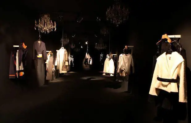 Poi ci sono gonne e giacchettine termosaldate stretch con dettagli in pvc e magnifiche giacche sartoriali con taglio kimono strette da cinture obi ricamate a mano, e persino un abito in cotone elasticizzato e molto battuto costruito però con bustino, stecche e cerchio, come si faceva nell'Ottocento. Una selezione di questi modelli verrà collocata anche negli spazi di Casa Dondup, speciale punto vendita aperto a Milano l'anno scorso dove è possibile acquistare le proposte di designer emergenti.