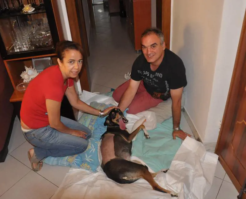 Avviso a chi ama i cani: questa è una storia a lieto fine condita da tanto amore e solidarietà. Anche se la protagonista è una cagnetta spaventata che, forse per paura di un tuono, sola in casa, due settimane fa si è gettata dalla finestra aperta ed è caduta per cinque piani, rovinando sullasfalto. Il suo guaito, acuto e terribile è risuonato in via Luca Cambiaso, a San Fruttuoso, laltra domenica alle tre del pomeriggio, richiamando gente dai balconi e dai locali aperti. Kira, giovane meticcia, era in un lago di sangue, con gli occhi semichiusi, ma con il cuore che batteva ancora. Una scene terribile, che tuttavia ha fatto subito venire in mente a qualcuno che lì vicino, in zona, cè lo studio di Pierluigi Castelli, veterinario e presidente genovese della Lega del cane. Lui è arrivato subito, ha stabilizzato la cagnetta che aveva la colonna vertebrale e una zampa fratturate e con laiuto di alcuni vigili lanimale è stato trasportato allAnimal Assistance di via della Libertà, dove ha ricevuto le prime cure. Sergio e Maria Pina i suoi padroni, erano fuori casa e rintracciati sono corsi dalla loro cagnolina per sentirsi dire però che per salvarla si doveva tentare un intervento a Milano, in una clinica specializzata: costo 2mila euro. Ma la cifra era troppo alta.