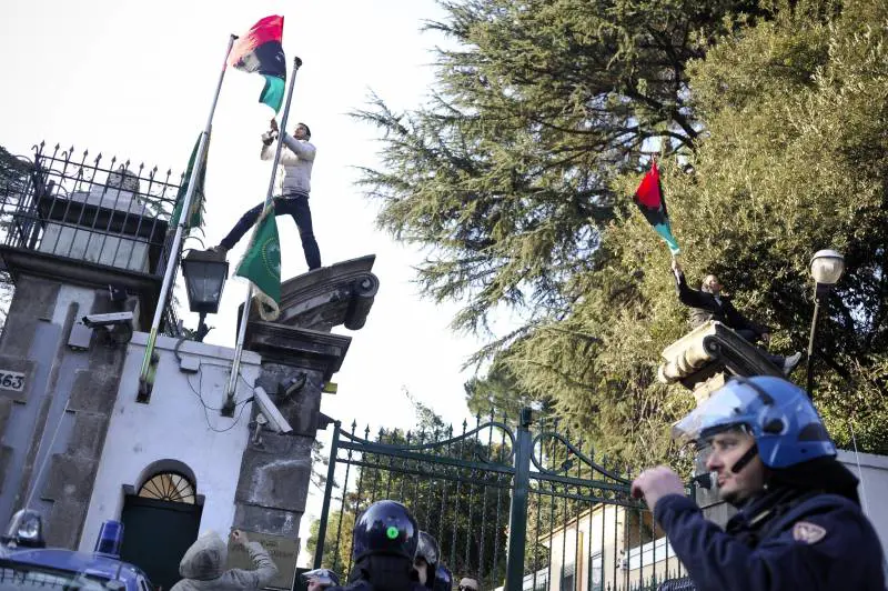 "Ora abbiamo raggiunto lo scopo della nostra manifestazione, abbiamo issato la vera bandiera della Libia" ha detto uno dei militanti. E tutti i dimostranti, almeno un centinaio, hanno inveito contro "l’ambasciatore assassino in Italia, servo di Gheddafi".