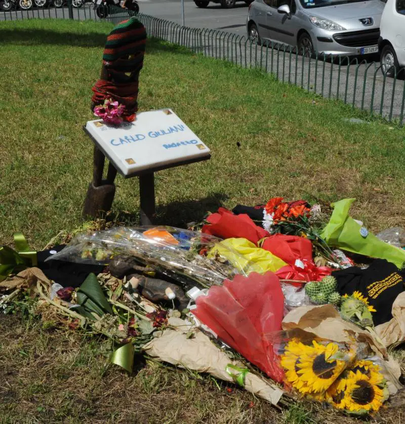 La targa si trova ancora nellaiuola pubblica di piazza Alimonda, di fronte alla chiesa di Nostra Signora del Rimedio, chiusa dal parroco durante l'adunata dei 500 attivisti no global di mercoledì scorso. La targa è ancora lì, anche se la posa non è mai stata autorizzata dal Prefetto, né è stata sentita la Soprintendenza, né vi è una delibera di Giunta, né il parere del Municipio, che, a dire del presidente Orengo (Pdl), si sarebbe eventualmente comunque espresso negativamente.