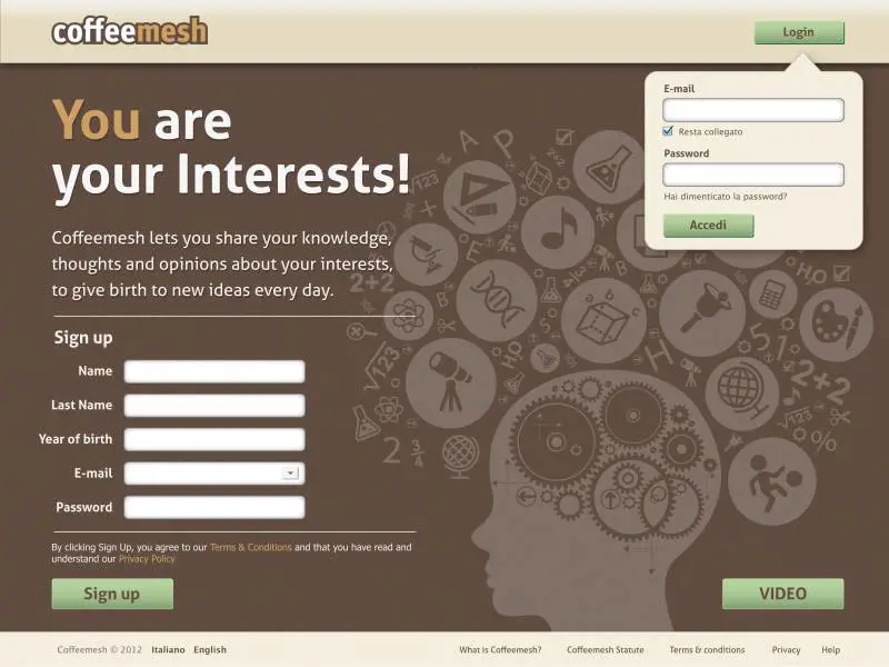 In altre parole su Coffeemesh in mette in rete la conoscenza, come in una sorta di salotto culturale online come avrebbero fatto senz’altro Diderot, Montesquieu, Rousseau e Voltaire se ci fossero nel diciottesimo secolo. Per il momento Coffeemesh è stato lanciato (in versione Closed-Beta) in Italia, negli Stati Uniti e nei paesi anglosassoni con lo slogan “you are your interests”.