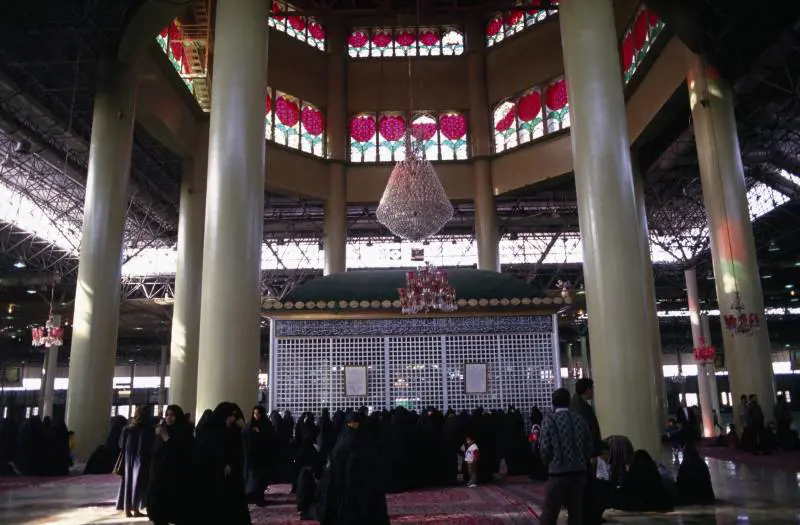 L’altezza delle torri, 91 metri, rimanda all’età in cui morì, il numero dei tulipani scolpiti che ornerà la cupola centrale, 72, quello dei seguaci dell’Imam Hossein trucidati a Kerbala nel 680 d.C, il martirio dopo il quale lo sciismo si fece scisma permamente e religione a sé. All’interno del santuario, nello spazio intorno allo zarih, la grande gabbia per le offerte, ci sono famiglie che fanno un picnic, bambini che giocano, coppie che chiacchierano, poveri che dormono. Sul terreno si allineano grandi tappeti e il tutto ha le dimensioni di un parco pubblico di cemento dove ci si può anche divertire e non solo pregare. Sembra che questa fosse la volontà dello stesso Khomeini. Non sorprende sia stata rispettata. Nei negozietti che esternamente gli fanno corona, trovi i dvd di Mister Bean, Superman, la serie di Pirati dei Caraibi...