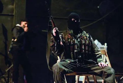 (...) Forse i genovesi ricorderanno le esibizioni acrobatiche (peraltro neppure molto apprezzate) che gli spagnoli tennero in occasione del capodanno cittadino del 2004, roba comunque da far stare migliaia di persone con il naso in su al Porto Antico. Oggi e domani, invece, non terranno banco lo stupore e la meraviglia, i colori sgargianti ed i volteggi, ma la paura. Quella vera, quella che ciascuno di noi almeno una volta ha provato ad immaginare seguendo in televisione o leggendo sui giornali di atti di terrorismo. Il terrorismo infatti entra in sala da protagonista, con i suoi mitra, i suoi uomini incappucciati, le raffiche sparate verso il soffitto e ad altezza duomo, le urla, la violenza, le ragioni dellodio. E il pubblico da spettatore diventa suo malgrado ostaggio e protagonista. Una esperienza estrema dove lunica nota positiva è la ricerca della funzione catartica del teatro.