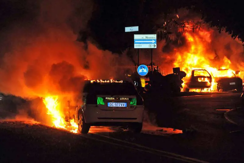 Una settantina di loro sono riusciti ad aggirare il servizio d’ordine e hanno raggiunto il retro del palco, da dove hanno lanciato petardi e fumogeni. Nelle strade adiacenti sono state incendiate cinque automobili, comprese una dei vigili urbani e una dei carabinieri, e alcuni agenti sono rimasti feriti. Solo in tarda serata la situazione è tornata alla normalità: almeno cinque gli ultrà fermati dalle forze dell’ordine.