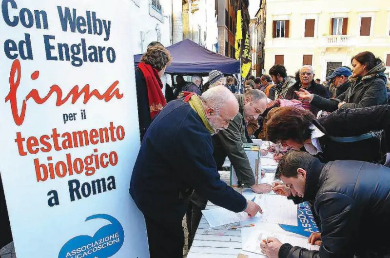 Lo lasciano quasi tra gli ultimi: dopo Lidia Ravera, Paolo Flores D’Arcais, Furio Colombo, Andrea Camilleri, Mina Welby, Dacia Maraini. Beppino Englaro ospite d’onore via telefono nel suo primo intervento pubblico dopo la morte di Eluana, alla manifestazione «Sì alla vita no alla tortura di Stato» organizzata dalla rivista MicroMega contro il disegno di legge presentato dalla maggioranza. Il proprio testamento biologico lo si può scrivere o video registrare, a piazza Farnese: fogli e telecamere per lasciare detto come si vuole essere curati, o morire. Davanti all’ambasciata di Francia si rivedono i girotondini (tra gli oratori anche Pancho Pardi), accanto ai radicali. Dopo una certa ora passa Antonio Di Pietro, che promette l’avvio di «una raccolta di firme» per il referendum abrogativo «il giorno dopo la pubblicazione in Gazzetta Ufficiale». È proprio dell’Italia dei Valori, scappa detto a Flores d’Arcais dal palco, la «messa a disposizione delle strutture e dei suoi militanti per realizzare questo momento di protesta contro il governo Berlusconi».